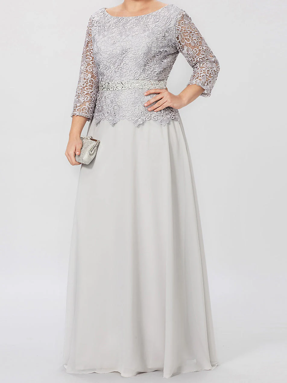 A-Line/Princess Round Neck 3/4 Length Sleeves Floor-Length Mother of the Bride Dresses with Applique & Sequins