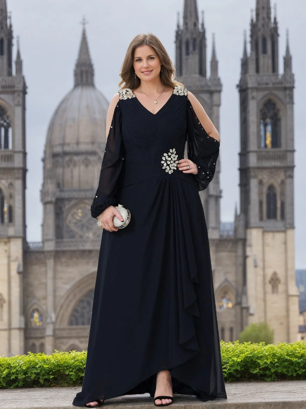 A-Line/Princess V-Neck Mother of the Bride Dresses with Rhinestones