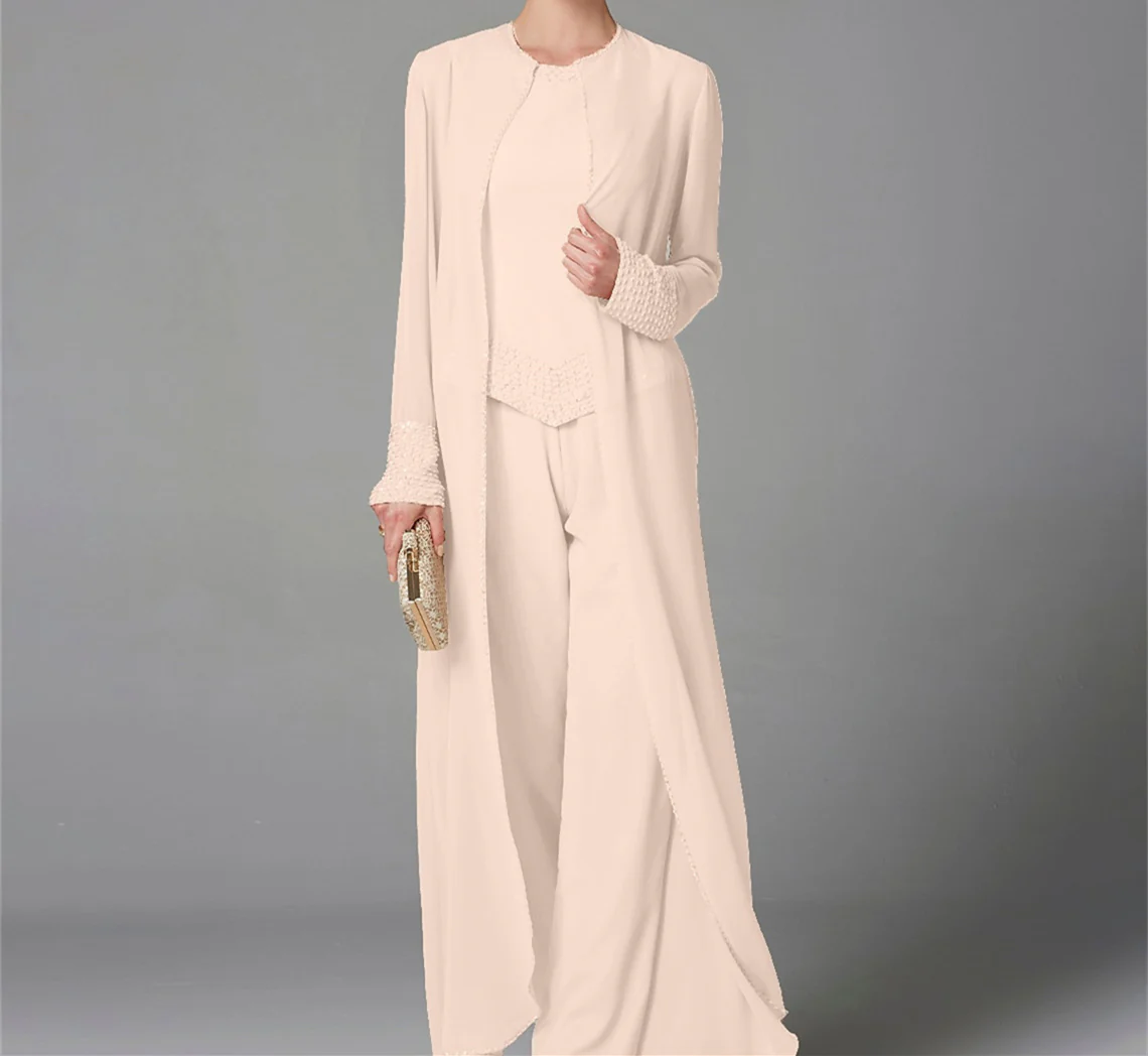 Chiffon Long Sleeves Mother of the Bride Pantsuits with Jacket & Sequins