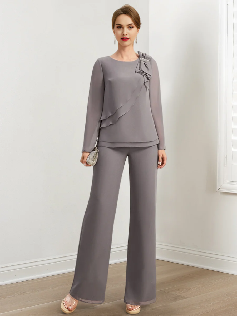 Chiffon Mother of the Bride Pantsuits with Beading & Ruffles