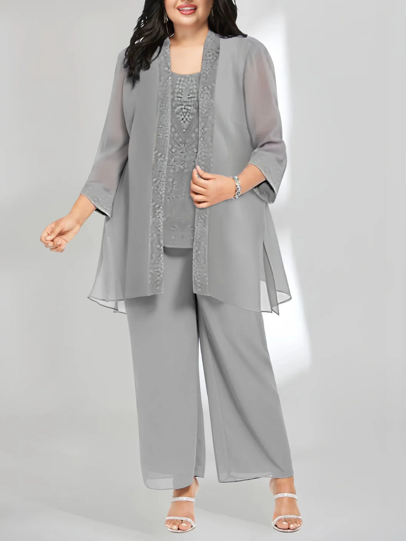 Chiffon Sequins Scoop Ankle-Length Mother of the Bride Pantsuits with Jacket